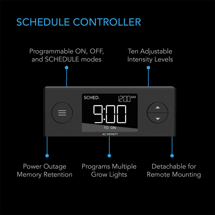 - Features a digital controller with ten light intensity levels and daily schedule programming.