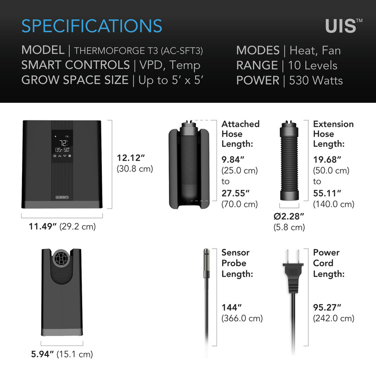 AC Infinity THERMOFORGE T3 – Plant Heater, 10 Heat Levels + Grow Tent Hose
