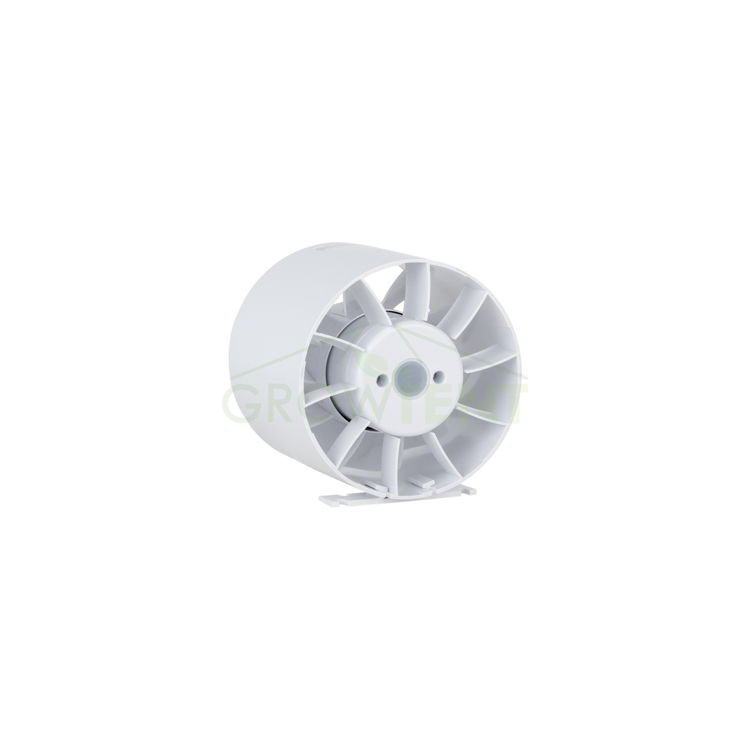 -connection flange/diameter: 100mm (4″) -Efficiency 104 m^3/h -Power: 15W -High static pressure -Operating volume level: max 45 dBA -Strong, robust and economical -Vibration-free operation -Material: ABS plastic -White -Fan without power cable, you can buy it separatelyhere. -The fan has a mounting foot The fan can be adjusted with the speed controller available here.
