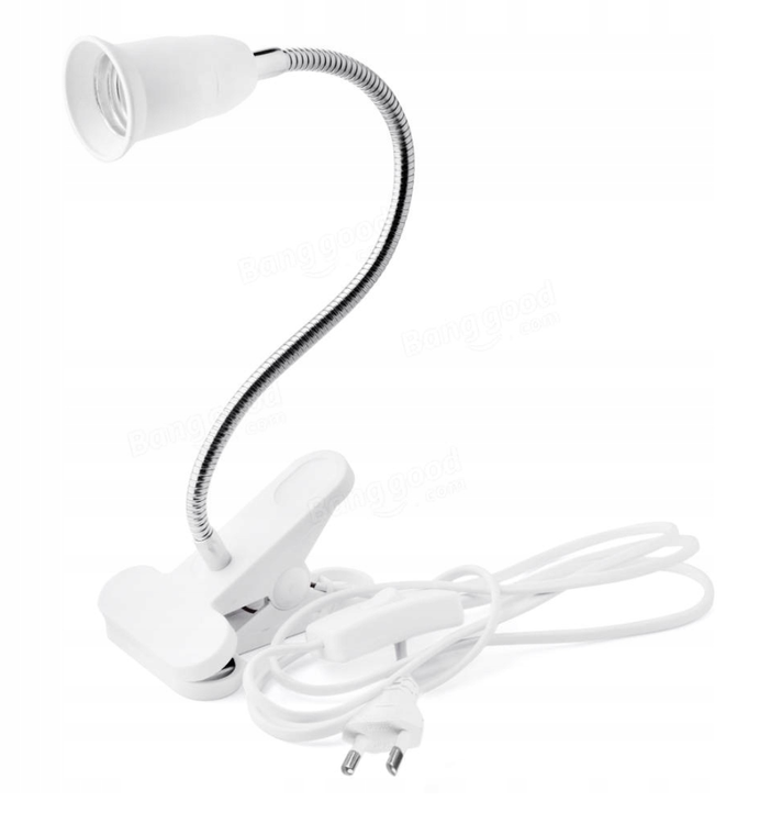 Robust e27 socket with a clip, switch and cable with a length of 1.3 m. Lamp for LED type bulbs