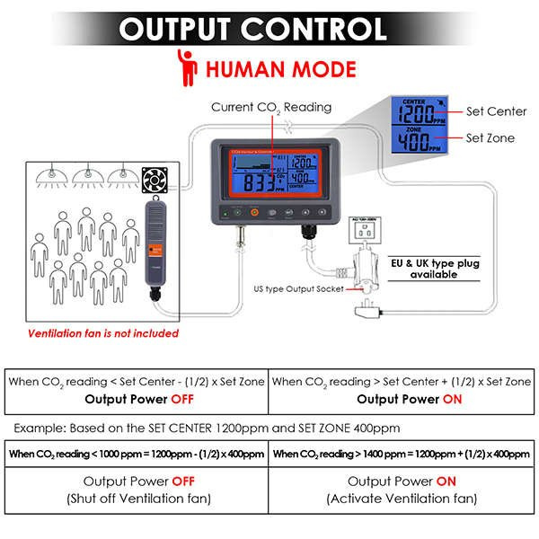 The digital CO2 controller is an easy-to-use controller to measure and maintain CO2 levels in a greenhouse or growing room: large digital LCD screen where levels can be read in real time ppm, day, hours, minutes, alarms, etc. This screen is divided into zones which make it much easier and faster to locate the parameter reading.