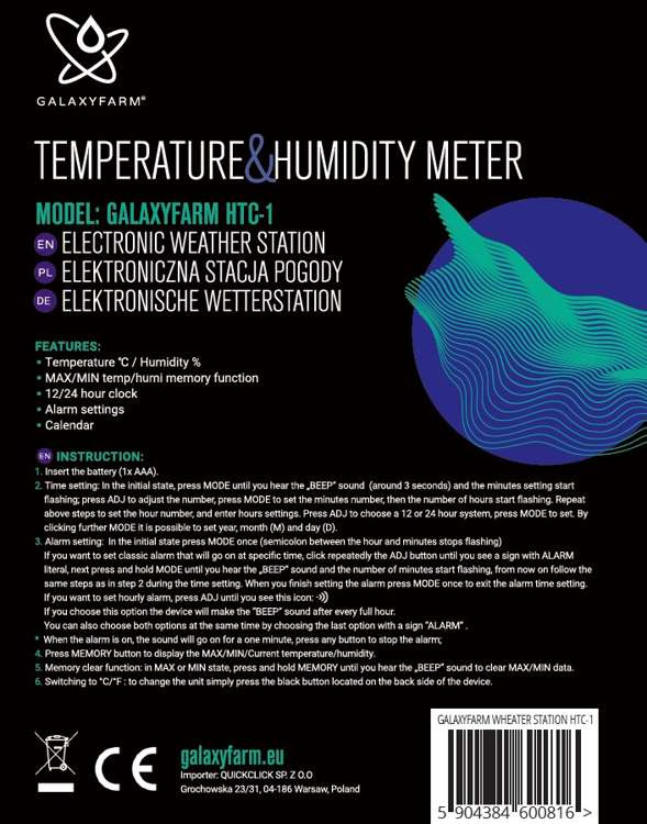 GALAXYFARM HTC-1 Digital Temperature & Humidity Meter