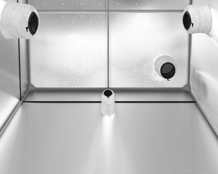 Galaxyfarm grow tents feature a sturdy metal frame with 16mm diameter tubes and durable plastic connectors. Each model includes an additional removable floor, making it easier to keep the grow area clean. The interior is lined with MYLAR Diamond 210D, a highly reflective material with a diamond structure, capable of reflecting up to 95% of light, ensuring optimal illumination for plants. The dark gray exterior gives the tent a sleek and professional look.