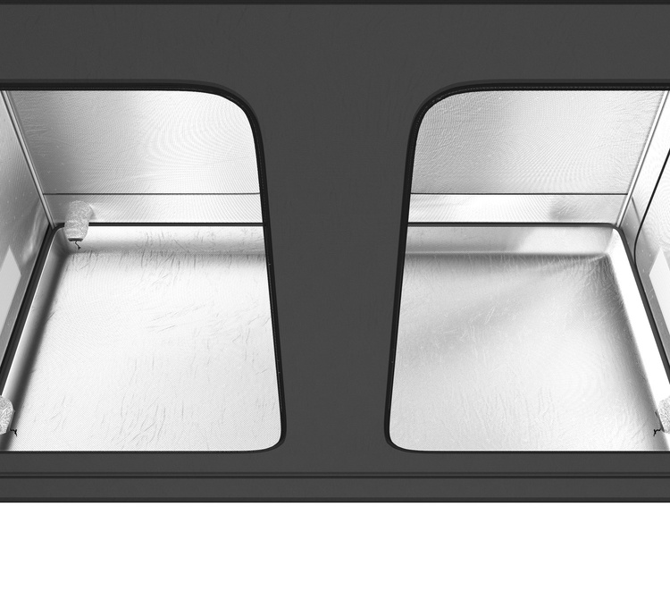 Galaxyfarm grow tents feature a sturdy metal frame with 16mm diameter tubes and durable plastic connectors. Each model includes an additional removable floor, making it easier to keep the grow area clean. The interior is lined with MYLAR Diamond 210D, a highly reflective material with a diamond structure, capable of reflecting up to 95% of light, ensuring optimal illumination for plants. The dark gray exterior gives the tent a sleek and professional look.