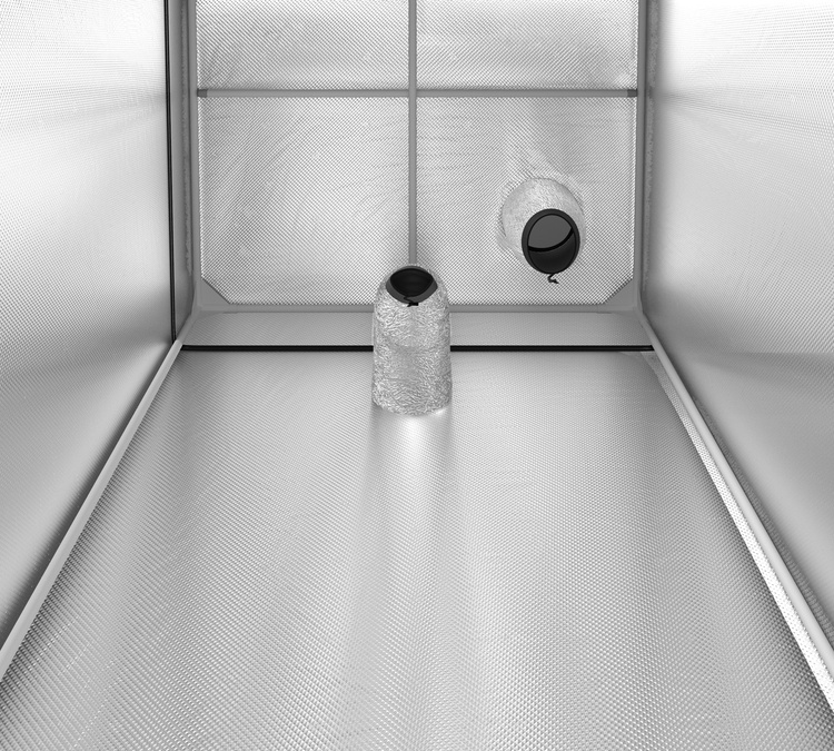 Galaxyfarm grow tents feature a sturdy metal frame with 16mm diameter tubes and durable plastic connectors. Each model includes an additional removable floor, making it easier to keep the grow area clean. The interior is lined with MYLAR Diamond 210D, a highly reflective material with a diamond structure, capable of reflecting up to 95% of light, ensuring optimal illumination for plants. The dark gray exterior gives the tent a sleek and professional look.