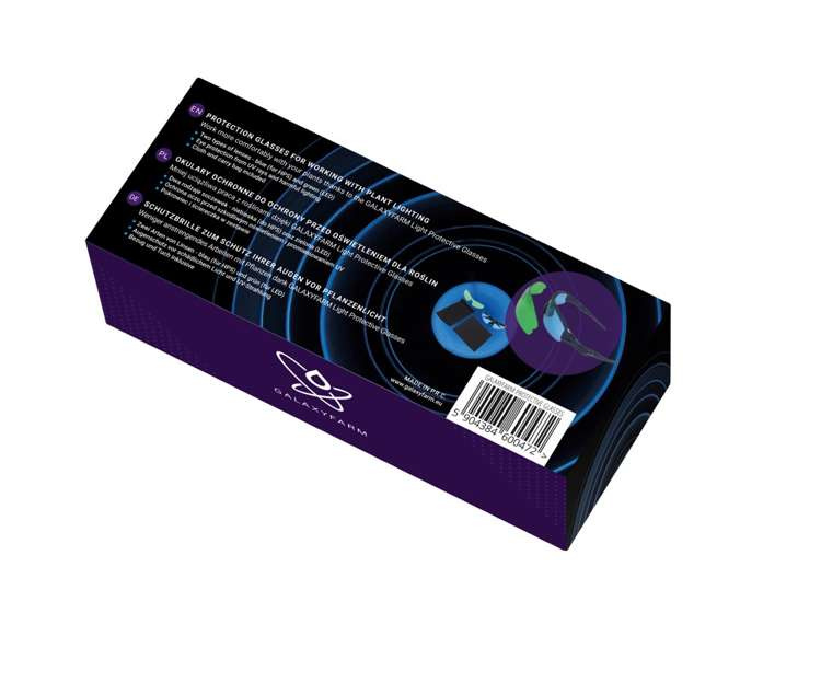 In addition to protecting the eyes, they help identify pests and diseases without having to switch off the lighting. GALAXYFARM® glasses have a specially developed blue lens that corrects the orange shade of sodium lamps, and a green lens to use with LED lighting, making the room look as if it were in daylight.