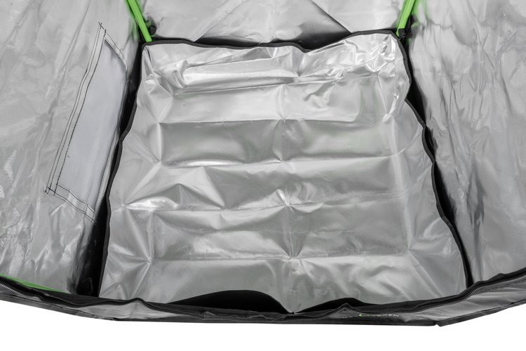 -tent interior is made of highly reflective material – MYLAR DIAMOND 210D + black oxford fabric (outside)