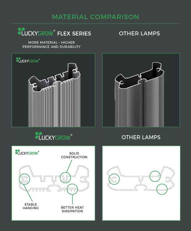The LUCKYGROW FLEX 720W lamp is a reliable support for professional crops and home cultivation. Thanks to its quiet operation, energy savings and advanced light spectrum, it supports healthy and rapid plant growth, while being easy to use.