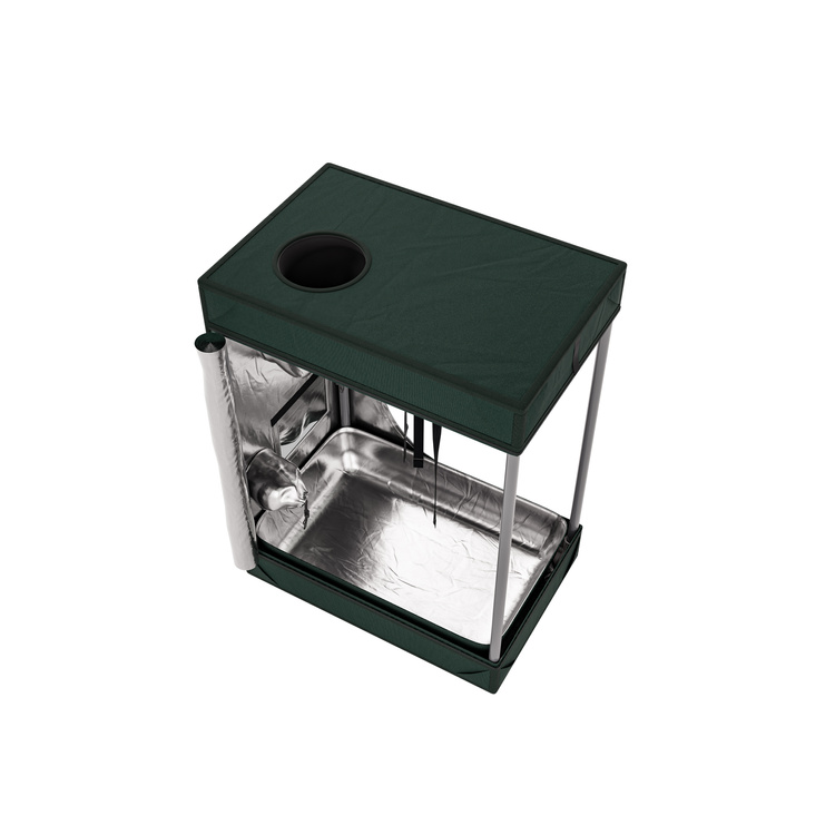 The durable structure based on a 16 mm steel frame has been expanded with new plastic connectors featuring the logo, aesthetic tubes, and a rubber logo. The standard observation window made of PVC film allows quick plant inspection without disturbing internal conditions.