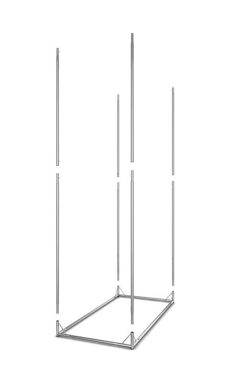 2. FIT FRAME WITH MATERIALGet the material out, move all the sliders apart. Match the built-in frame in the base of the tent. |