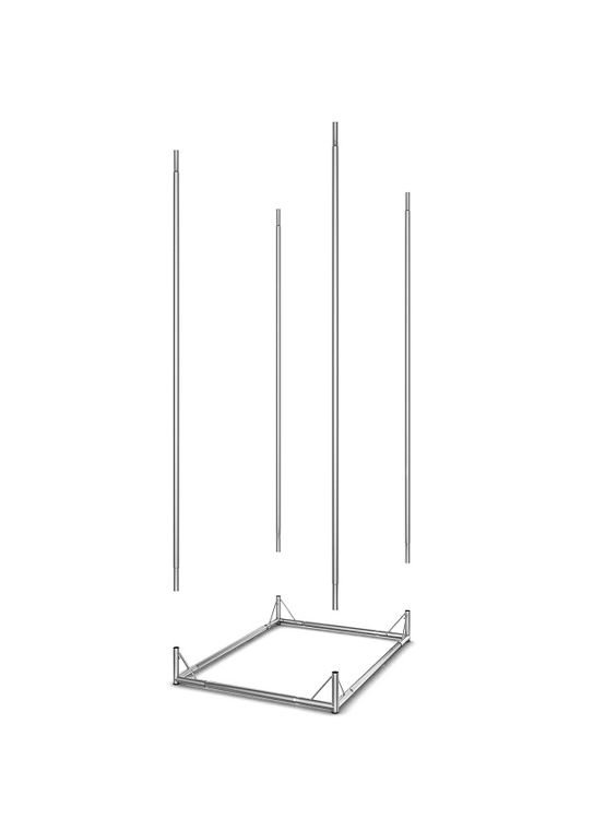2. FIT FRAME WITH MATERIALGet the material out, move all the sliders apart. Match the built-in frame in the base of the tent. |