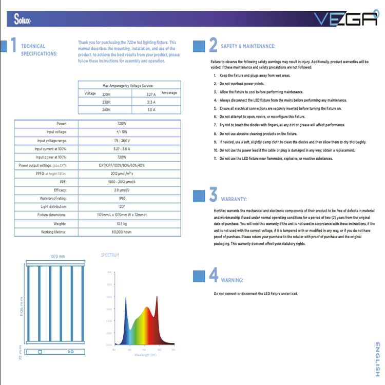 LED Grow light Vega PRO 720W 2.9μmol/J Full Spectum – Professional Grow Light for Plant Cultivation with built-in LED driver