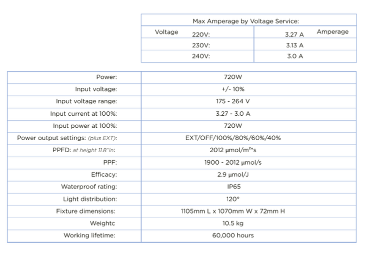 Power adjustment: 40% / 60% / 80% / 100% / EXT / OFF – adaptable to different growth stages