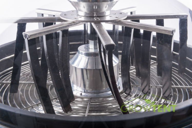 covered with a grid. After re-placing the lid and using the crank (knob), the flowers will begin to circle on the mesh cover, gently rubbing against it. The mesh is made of small wires and blades, which begin to vibrate quickly and cut off the leaves that fall into the lower container. For better effect, the cover should be removed from the grid, then we will get thicker cuts.